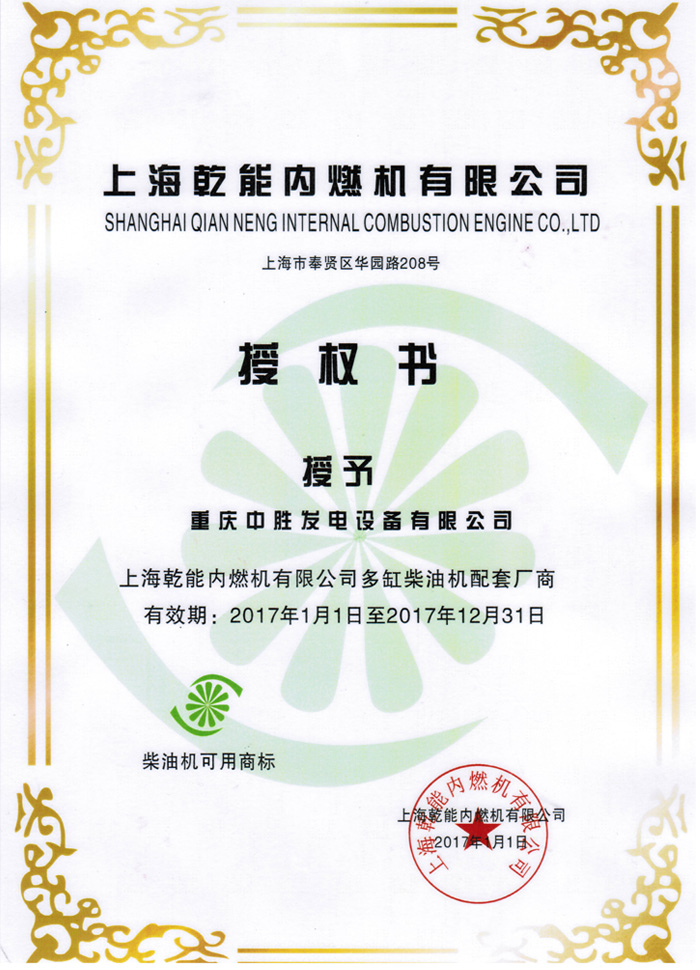 上海乾能授權證書