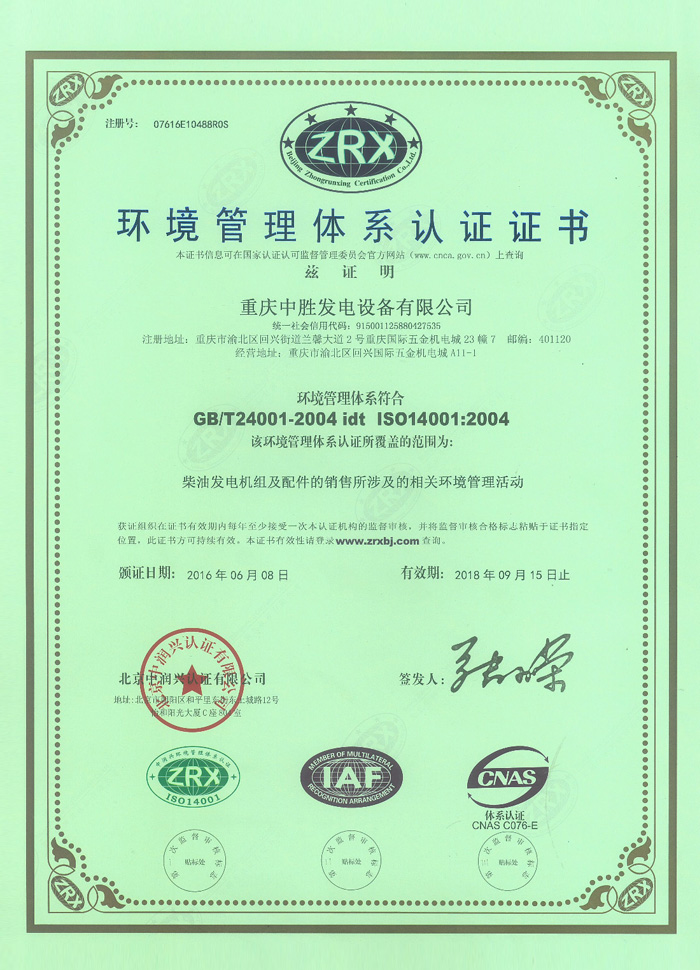 環境管理體系認證證書